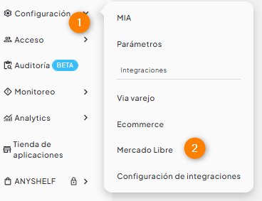 1. Acceda al menú Configuración > Integraciones > Mercado Libre;