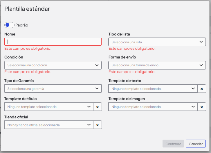 Los modelos predeterminados indican cómo ANYMARKET debe publicar automáticamente los anuncios mediante la función de Publicación Automática (menú Catálogo > Categoría).