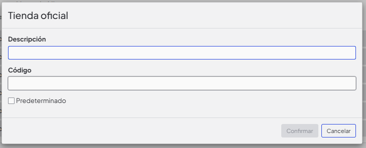 Predeterminado: Seleccione si es su tienda oficial predeterminada.